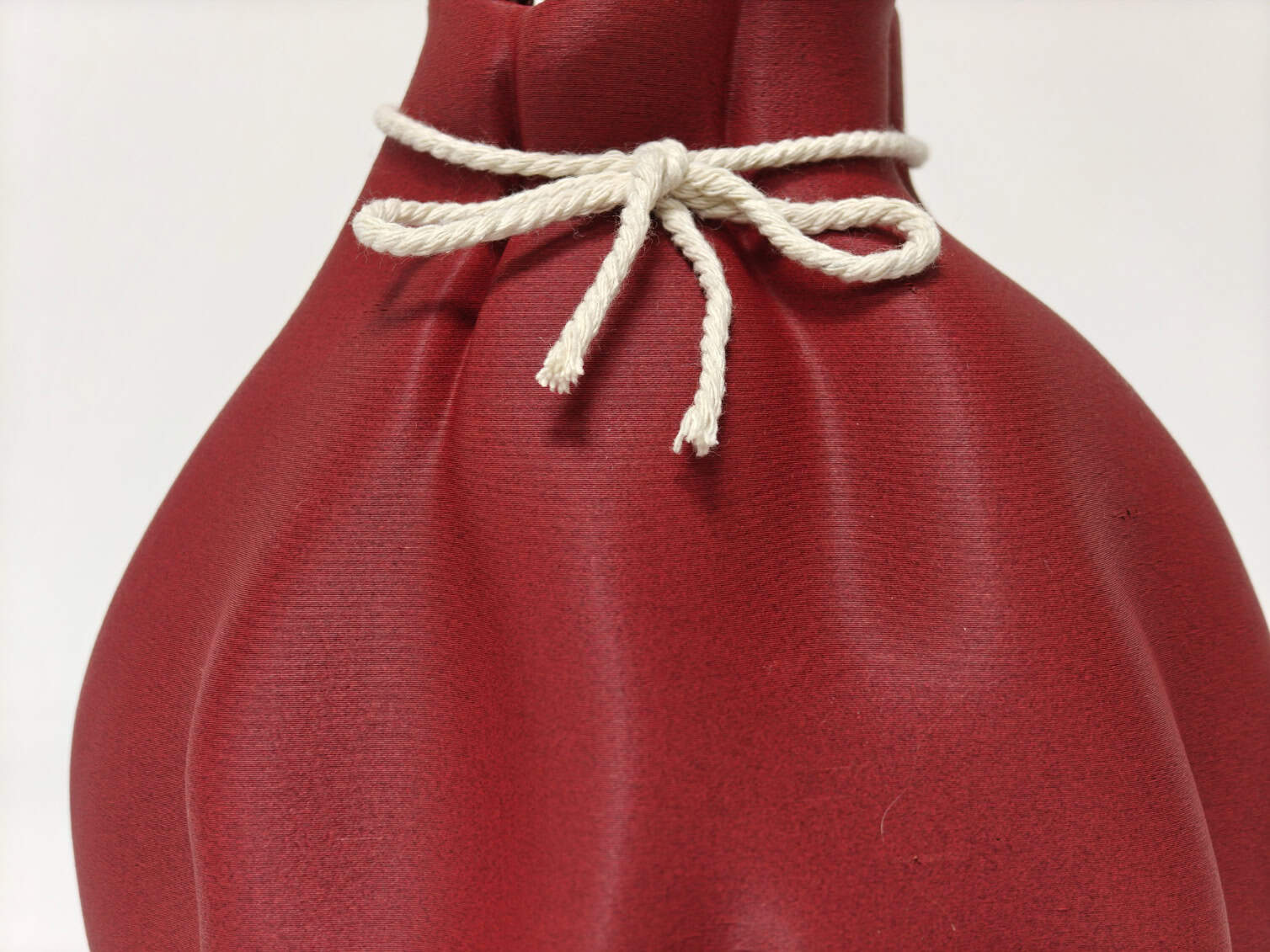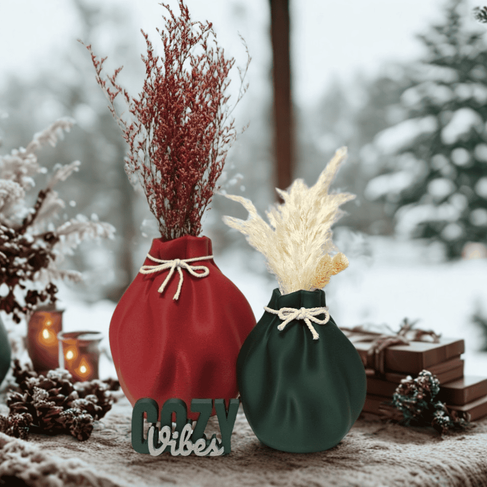 Breng warmte en charme in je interieur met onze ‘Pouch’ vaas – een unieke 3D-geprinte decoratie geïnspireerd op de zachte vormen van een stoffen buidel. De elegante plooien, het speels samengebonden koordje en de matte afwerking geven dit stuk een authentieke, knusse uitstraling, ideaal voor de herfst- en wintermaanden maar tijdloos genoeg om het hele jaar door te stylen.